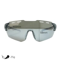 Brýle jsou vybaveny zrcadlovými polykarbonátovými čočkami s UV400 filtrem, které zajišťují 100% ochranu před UV zářením a zároveň eliminují oslnění. Ventilační systém s otvory v horní části skel umožňuje perfektní odvětrání bez zamlžování, zatímco nastavitelný nosník zaručuje stabilní a pohodlné usazení na obličeji.