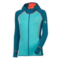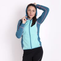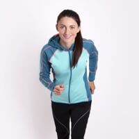 Dámská celopropínací mikina s kapucí TISPA HOODY je vyrobena ze značkového technického materiálu TECNOSTRETCH italského výrobce PONTETORTO, který ideálně plní požadavky druhé funkční vrstvy. Tento skvělý materiál je lehký, z venku hladký a odolný, zevnitř počesaný a heboučk. Navíc je skvěle funkční. Zaručuje vysokou elasticitu, maximální volnost pohybu, vynikající tepelnou izolaci a rychlé osychání. Ploché švy zajišťují komfort při nošení.