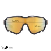 Brýle mají široké zorné pole pro perfektní přehled a nastavitelný nosník, který zaručuje bezpečné a pohodlné usazení. Gumové koncovky nožiček brání sklouznutí a drží brýle stabilně i při intenzivním pohybu. Polykarbonátové čočky s UV400 filtrem poskytují 100% ochranu před slunečním zářením, zatímco Revo coating na vnější straně skel eliminuje odlesky, zvyšuje kontrast a dodává brýlím luxusní zlatý odraz.