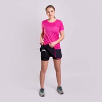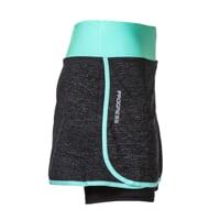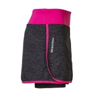Dámská sportovní sukně 2v1 ALERTA s vnitřními elastickými šortkami je vyrobena z velice příjemného, prodyšného, rychleschnoucího materiálu. Sukně má v pase všitou pohodlnou širokou gumu. Vnitřní šortky jsou šité plochými švy, které zaručují maximální komfort při pohybu. Na pravé straně je tvarovaný rozparek pro větší volnost pohybu. Na pravé nohavičce šortek je umístěná kapsa, která je skrytá pod sukní. Sukně je vhodná na běh, in-line brusle, fitness nebo tenis.