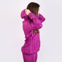 The VALEDA women's full-zip hooded jacket is a lightweight, breathable windbreaker that is treated with a durable Teflon DWR treatment so it can easily withstand lighter rain. The jacket can be folded into a small pouch that is inserted in the side pocket of the jacket. There is a clever runner's closure on the chest - a stud that doesn't allow the unzipped jacket to slip off the shoulders even when running fast. The jacket has two zipped side pockets and reflective elements for added safety.