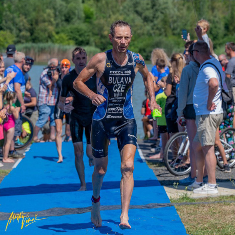 Dalším mezinárodním závodem byla Xterra Slovakia (13.7.). Opět jsem obsadil pěkné 2. místo. Výsledek byl ale ovlivněn poměrně těžkým pádem na kole na levé rameno. Závod jsem ale i navzdory tomu s velkými bolestmi dokončil, čehož si cením. Rentgen naštěstí ukázal, že jsem si nic nezlomil. Pohmožděniny ale ovlivnili mojí další přípravu. Na MČR v terénním triatlonu v Mostě (Krušnoman, 28.7.) jsem nastupoval s velkými obavami. Plaveckou část jsem sice zvládl o minutu pomaleji než obvykle, ale bez větších potíží. Na kole a v běhu jsem ze sebe vymačkal všechno a finišoval na bronzové pozici v kat. 50-59 let za podstatně mladšími veterány. Medaile z MČR má vždycky velkou cenu! 3.8. jsem v rámci přípravy jel krátký triatlon Házmburk a opět to bylo třetí místo. Vrcholem sezony bylo ME Xterra Czech (Prachatice, 10.8.). Ve velmi silné mezinárodní konkurenci jsem vybojoval pěkné 6. místo (M55-59). V plavání jsem ztratil díky potížím s ramenem 3-4 min. Na bronzovou medaili mi chyběly 3 min...