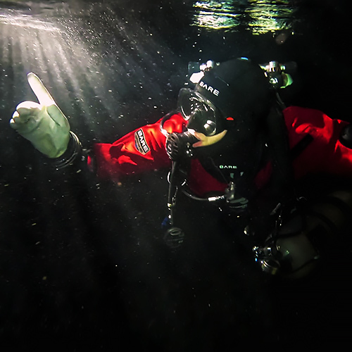 Naštěstí po pár minutách mé utrpení končilo vysněnou hloubkou, ve které se už dalo plavat. Po důkladné vzájemné kontrole a zopakování plánu ponoru jsme se vydali vstříc tajemné temnotě. Stěny a kameny hrály všemi barvami od růžové po tmavě šedou až černou. V úzkém kuželu našich světel se odkrývala tajemná zákoutí plná zajímavých skalních útvarů. Místy se u stropu vytvářely vzduchové kapsy, což vyvolávalo při správném nasvícení efekt slunečních paprsků. I po půl kilometru plavání se stále bylo na co dívat, dokonce stále víc! Ve chvíli, kdy jsme doplavali k prudkému srázu dolů, který se stáčel do spirály, vybuchl ve mě doslova gejzír emocí. Visela jsem ve volném prostoru, uprostřed již zmíněné skalní spirály a připadala si doslova jako v jiném vesmíru. Do očí mi vstoupily slzy vděku za to, že mohu něco tak nádherného vidět na vlastní oči. Spirála klesala až do hloubky 10 m, bylo třeba přesně kopírovat tělem její tvar. Zároveň jsem se snažila vyrovnávat tlak v uších, po dlouhém plavání v jedné hloubce byla změna tlaku náročná. Avšak tyto drobné nepříjemnosti jsou jen minimální vadou na kráse!