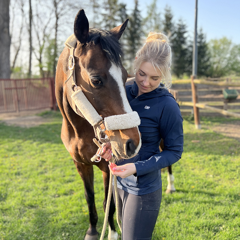 Další výhodou je snadná údržba bundy. I po opakovaném nošení a praní vypadá jako nová, což je pro mě obrovský bonus, protože jezdecké vybavení je často vystaveno nečistotám a vlhkosti. Design bundy je navíc stylový, v tmavě modré barvě působí elegantně a snadno se kombinuje s ostatními kousky v mém jezdeckém šatníku. Celkově bych tuto bundu doporučila všem jezdkyním, které hledají spolehlivý, funkční a zároveň módní kousek na každý den v sedle i mimo něj.